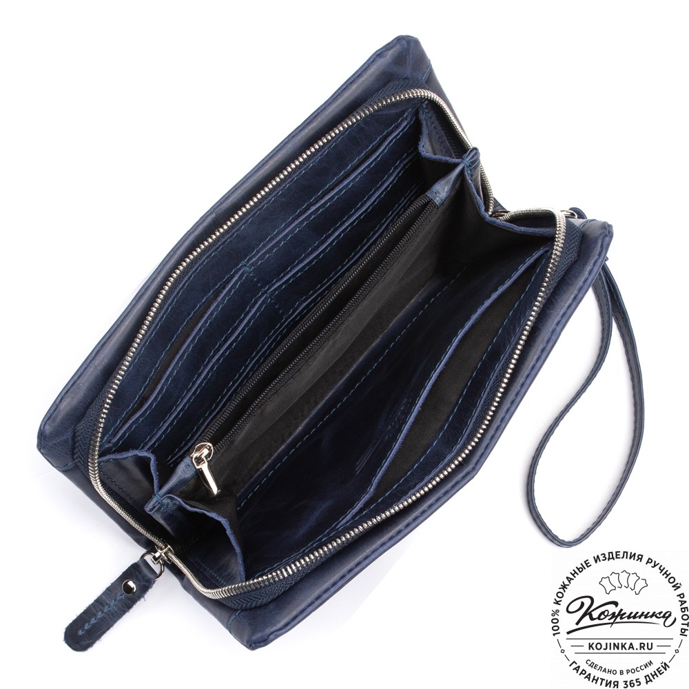 Кожаный клатч "Дарси" (синий антик) – стильный и элегантный клатч из натуральной кожи.