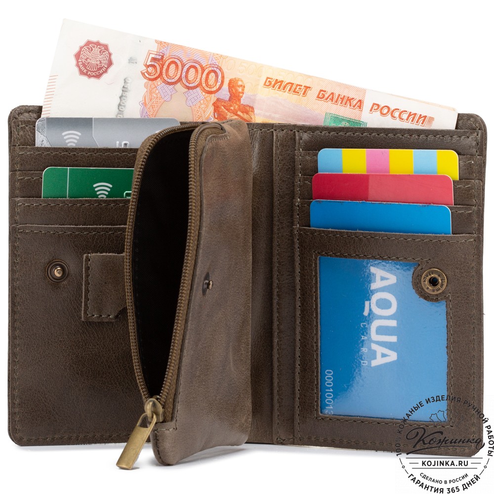 Кожаное портмоне "Япония" – небольшой, но вместительный кошелек со съемным отделением для мелочи внутри.