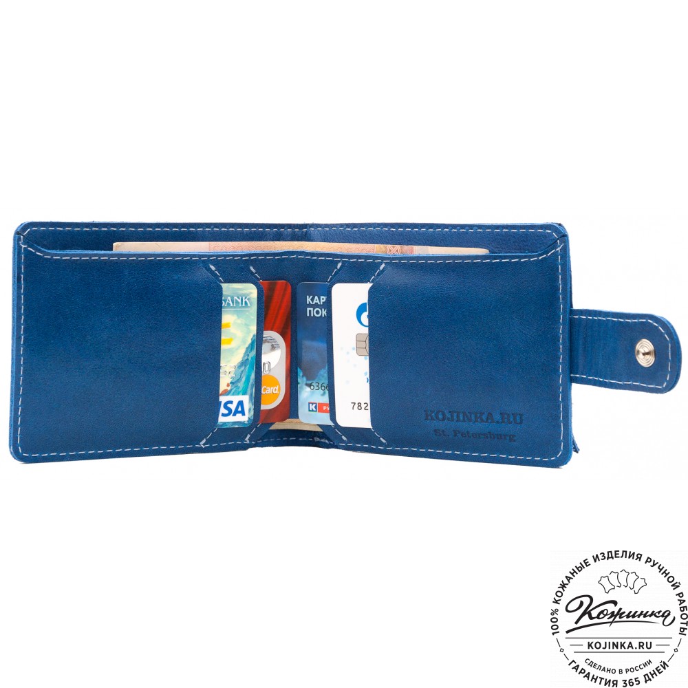 Кожаное портмоне Италия (синее) - отличный вариант небольшого бумажника с отделениями для карт и для мелочи.