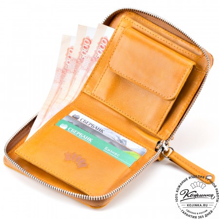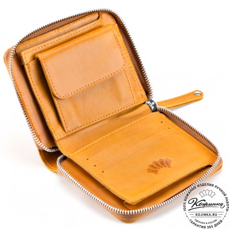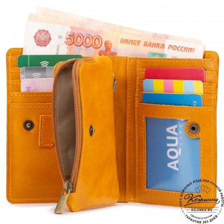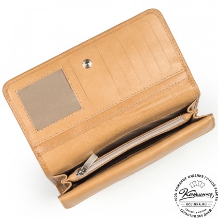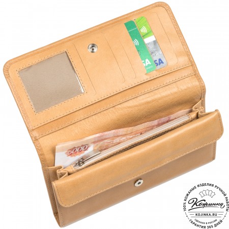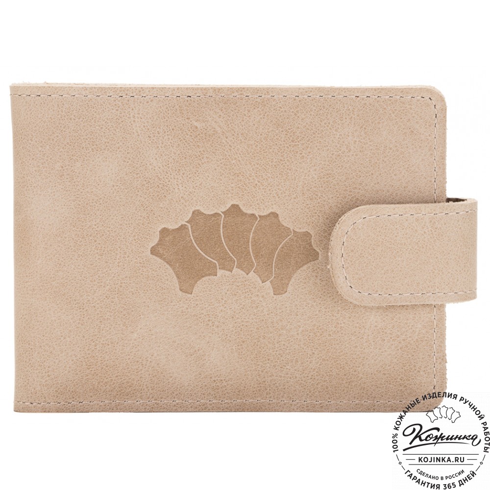 Кожаное портмоне Италия (бежевое) - отличный вариант небольшого бумажника с отделениями для карт и для мелочи.