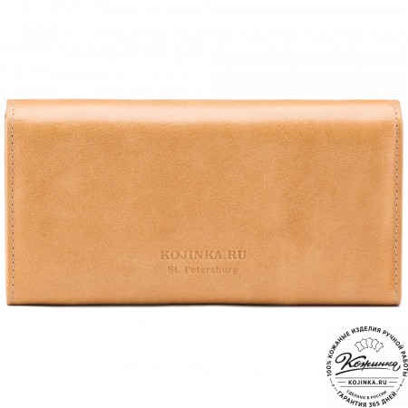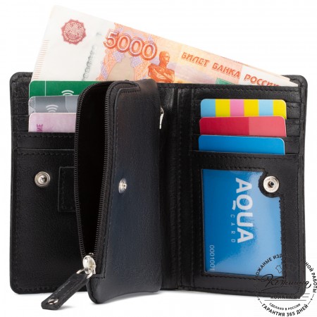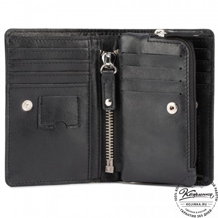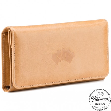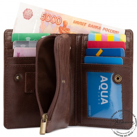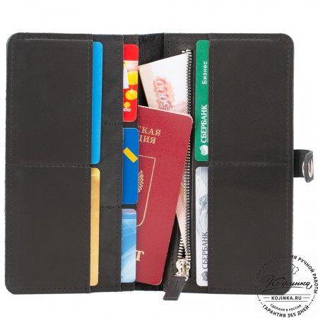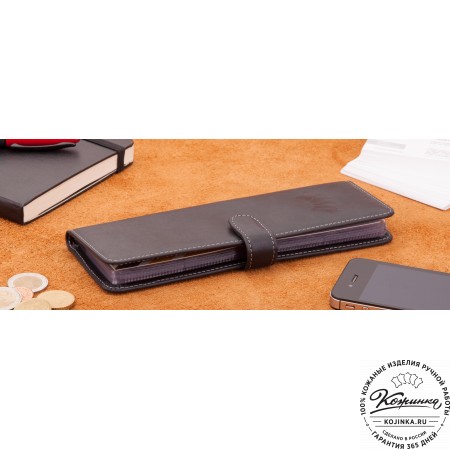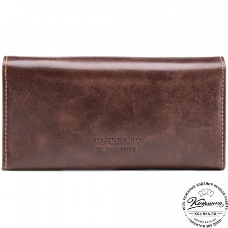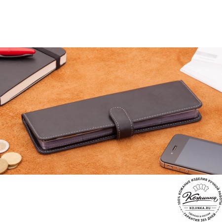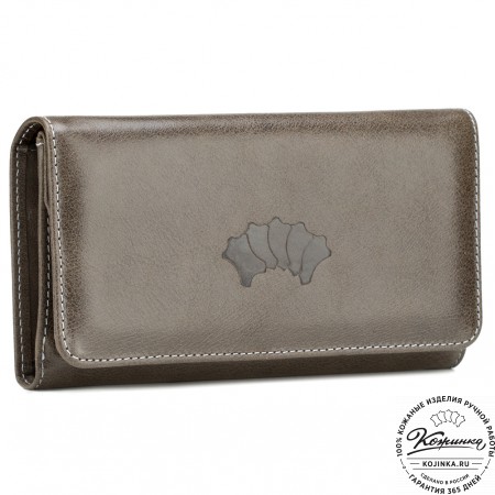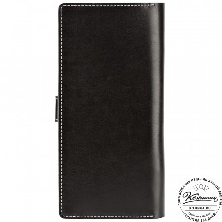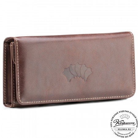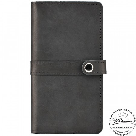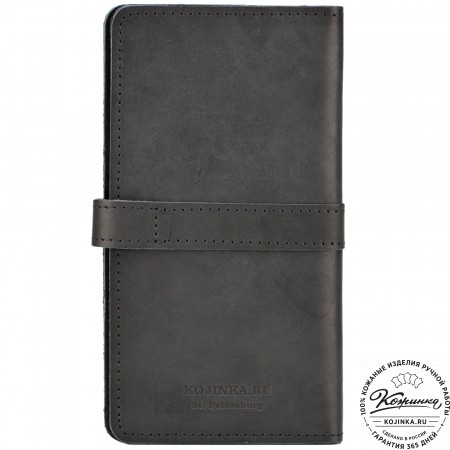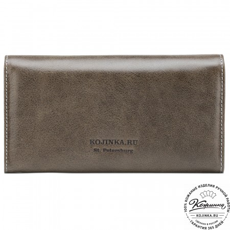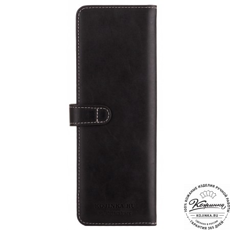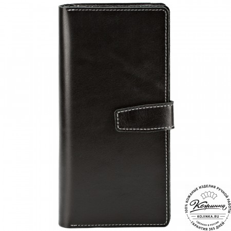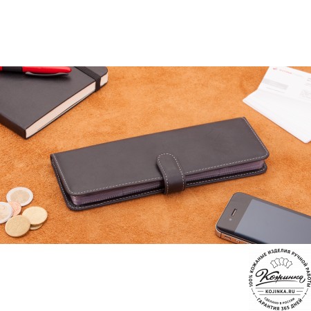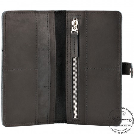 Портмоне Италия, как и вся коллекция, выполнено в мягкой, но достаточно толстой коже высокого качества. Фиксируется в закрытом состоянии на хлястик с кнопкой.