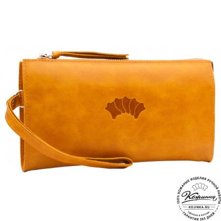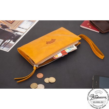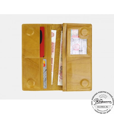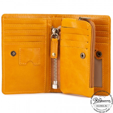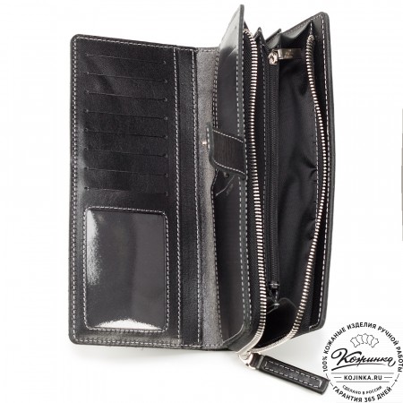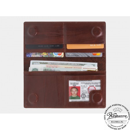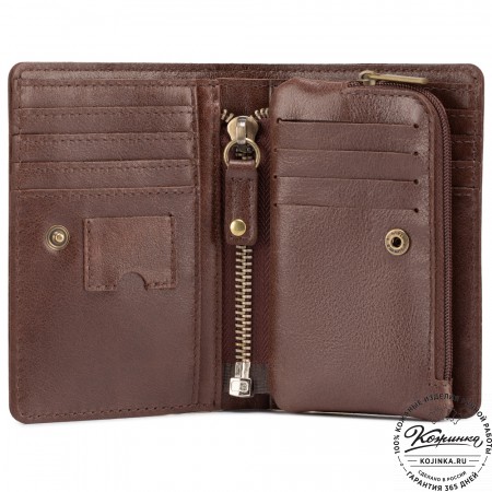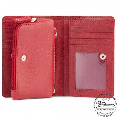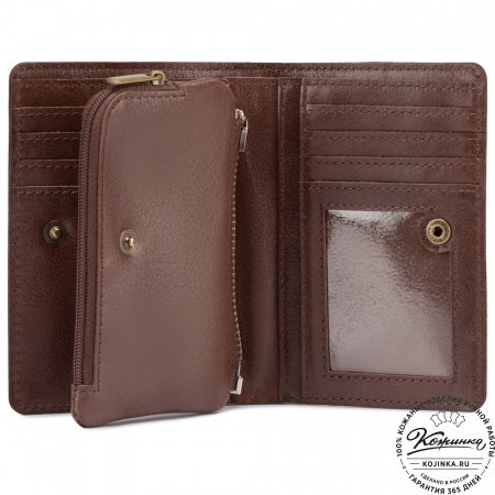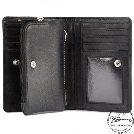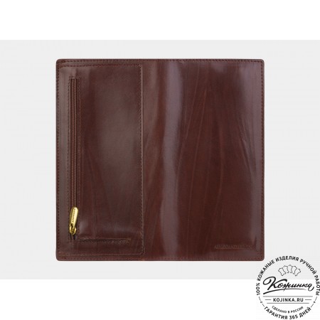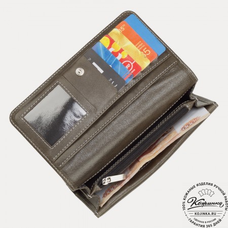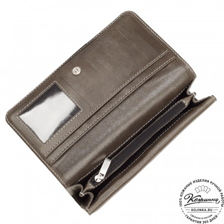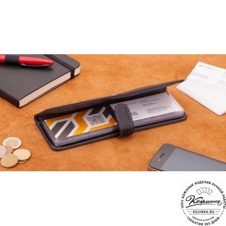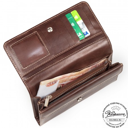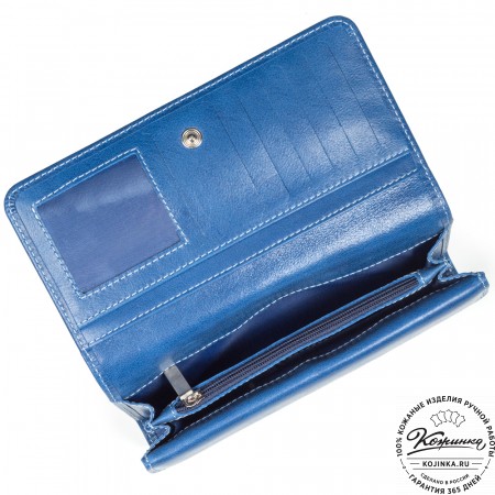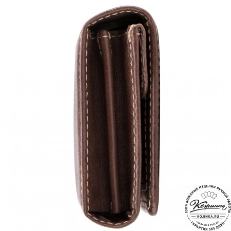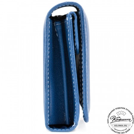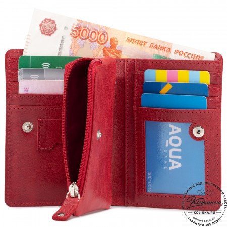 Портмоне Италия, как и вся коллекция, выполнено в мягкой, но достаточно толстой коже высокого качества. Фиксируется в закрытом состоянии на хлястик с кнопкой.