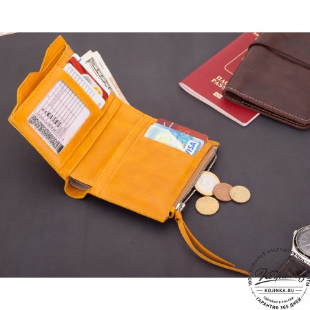 Портмоне вместит в себя много наличных денег, монеты в специальном отделении на молнии, пластиковые карты и даже чеки от покупок в магазинах. Все отделения с подкладом, аккуратно прострочены.