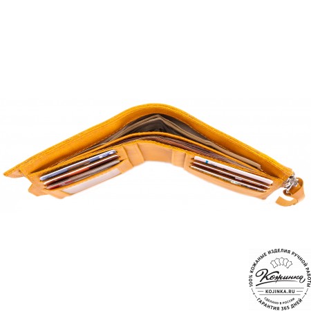 Кожаное портмоне Санкт-Петербург, как и вся коллекция, выполнено в мягкой, но достаточно толстой коже высокого качества.