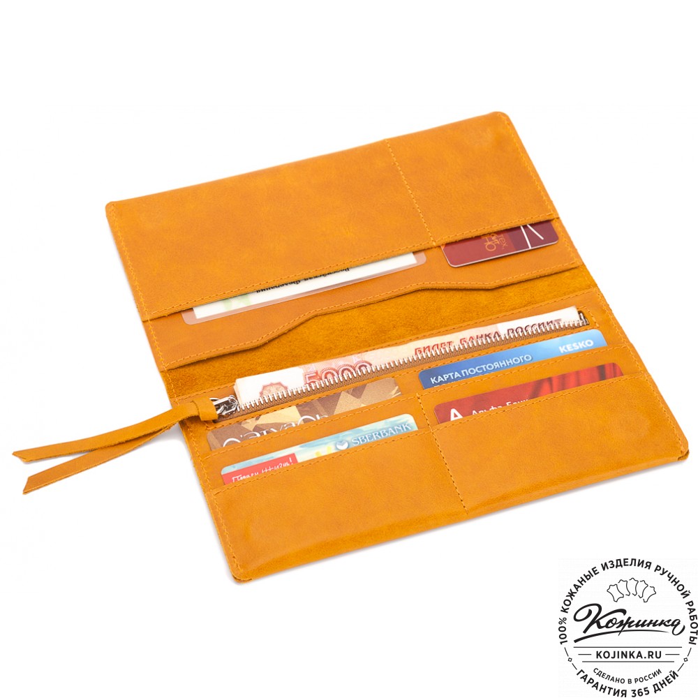 Портмоне вместит в себя много наличных денег, монеты в специальном отделении на молнии, пластиковые карты и даже чеки от покупок в магазинах. Все отделения с подкладом, аккуратно прострочены.