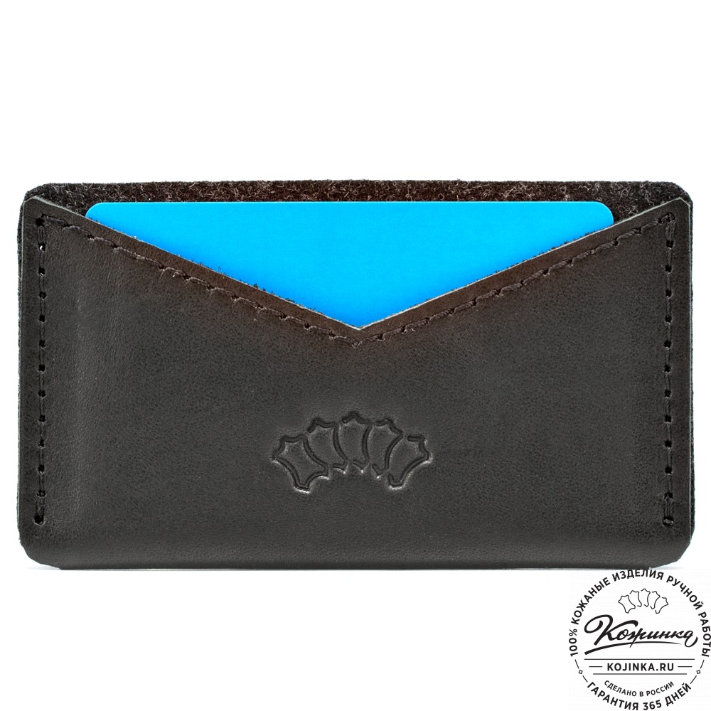 Держатель для пластиковых и банковских карт "Эрик" (черный) – компактный кардхолдер из натуральной кожи и войлока.