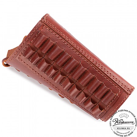 Однорядный кожаный патронташ на приклад для 6 патронов 12,16 и 20 калибров.