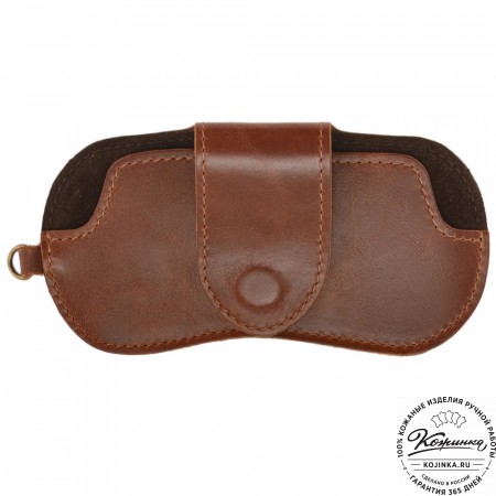 Футляр изготовлен из жёсткой толстой кожи высочайшего качества. Он отлично держит форму и надежно защищает очки от повреждений.