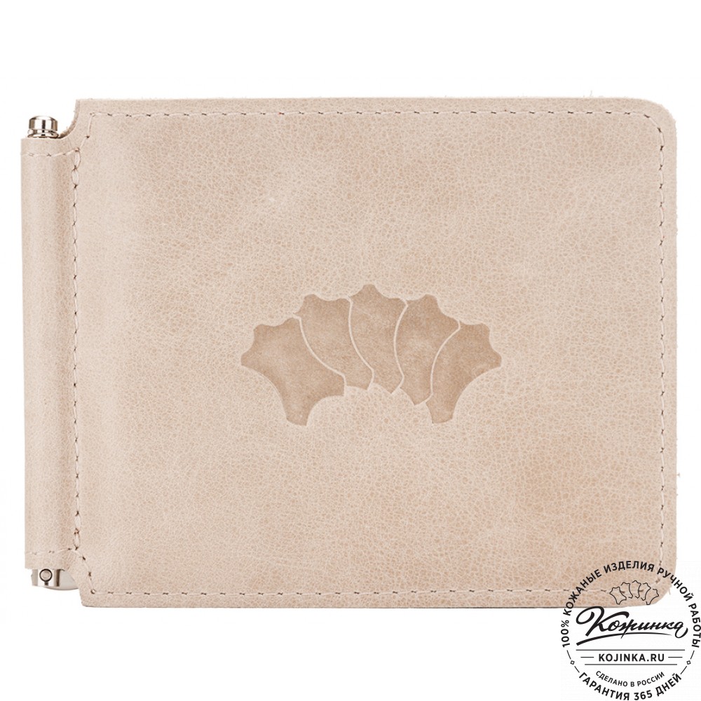 Зажим представляет собой обложку из качественной натуральной кожи для денежных купюр. Купюры удерживаются в обложке с помощью металлического зажима удобной конструкции.