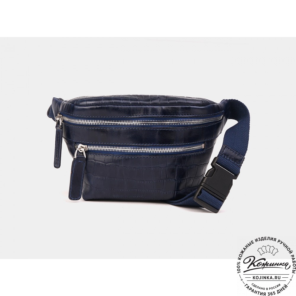 Кожаная сумка на пояс "Бритни" (синий крокодил) – аксессуар для тех, кто ведет активный образ жизни!