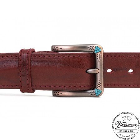 Кожаный ремень B40-1306 (бордо) - женский джинсовый ремень из фактурной натуральной кожи.