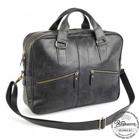 Кожаная сумка "Командор" (чёрная) – вместительная, удобная, прочная сумка для тех, кто ценит качество и комфорт.