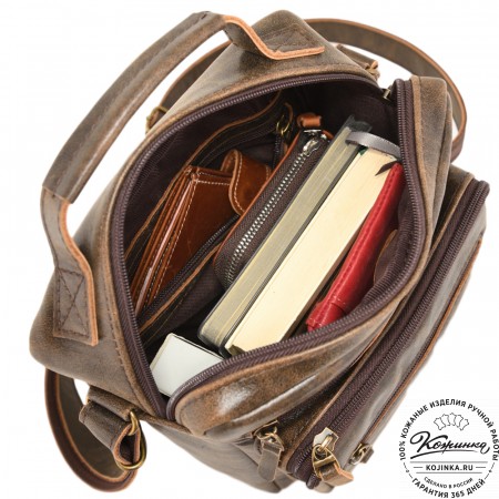 Сумка изготовлена из высококачественной натуральной кожи Крейзи хорс - потертости и неповторимый рисунок от изгибов придают ей эффект старины и винтажности. Со временем эта сумка будет выглядеть только лучше.