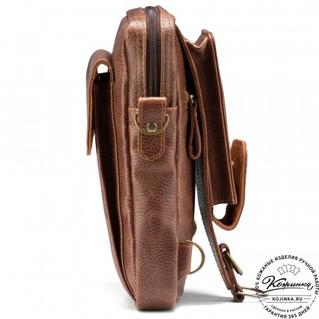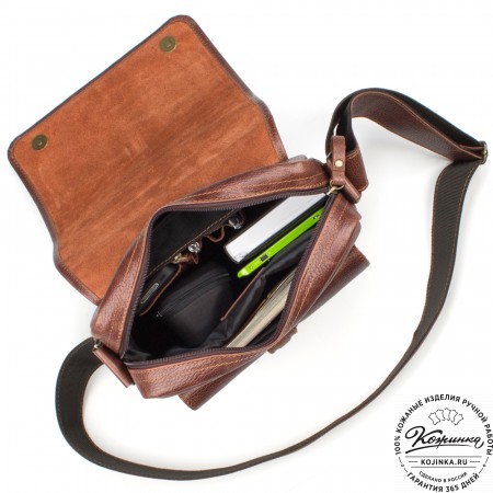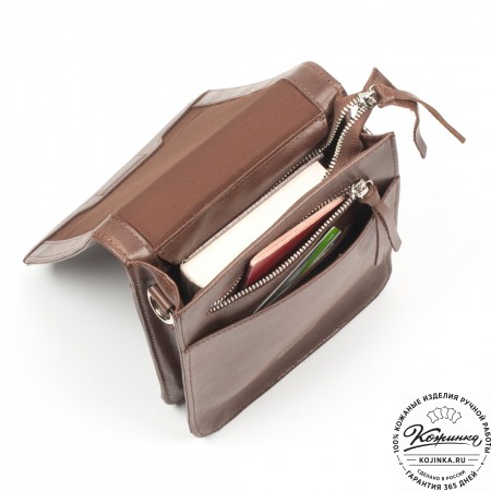 Кожаная сумка "Боб" (коричневая) – стильная, компактная, удобная сумка, в которой все Ваши вещи всегда будут на своих местах. А все благодаря большому количеству карманов – в этой сумке их восемь!