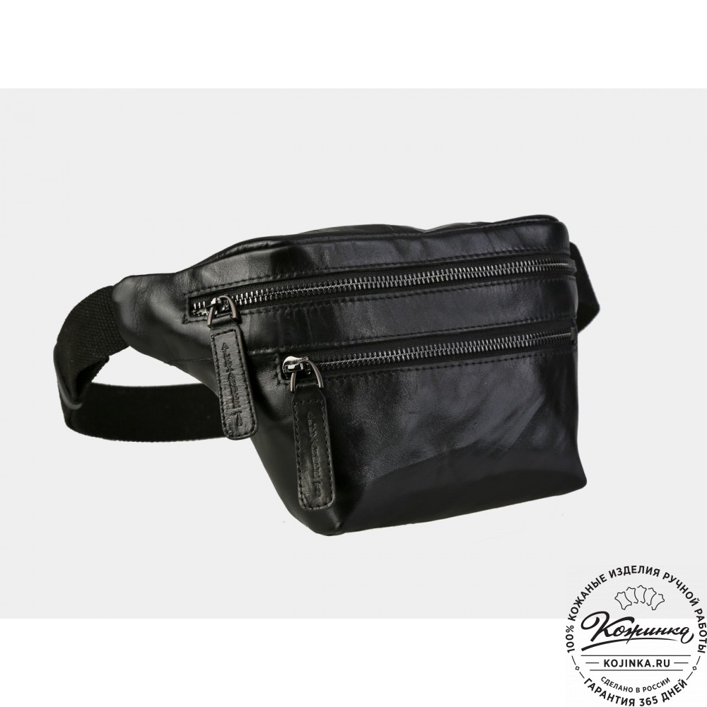 Кожаная сумка на пояс "Бритни" (чёрная) – аксессуар для тех, кто ведет активный образ жизни!