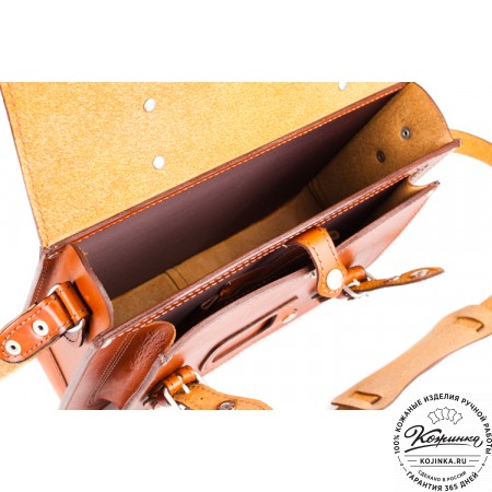 Портфель из 100% натуральной толстой кожи, закрывается на удобные петли. Внутри одно просторное отделение. На задней стенке основного отделения расположен карман на молнии и дополнительный карман без молнии (под планшет). Удобные кожаные "ушки" по боковым стенкам основного отделения. Передний накладной карман имеет скрытые малые кармашки на молнии и дополнительные для визиток.