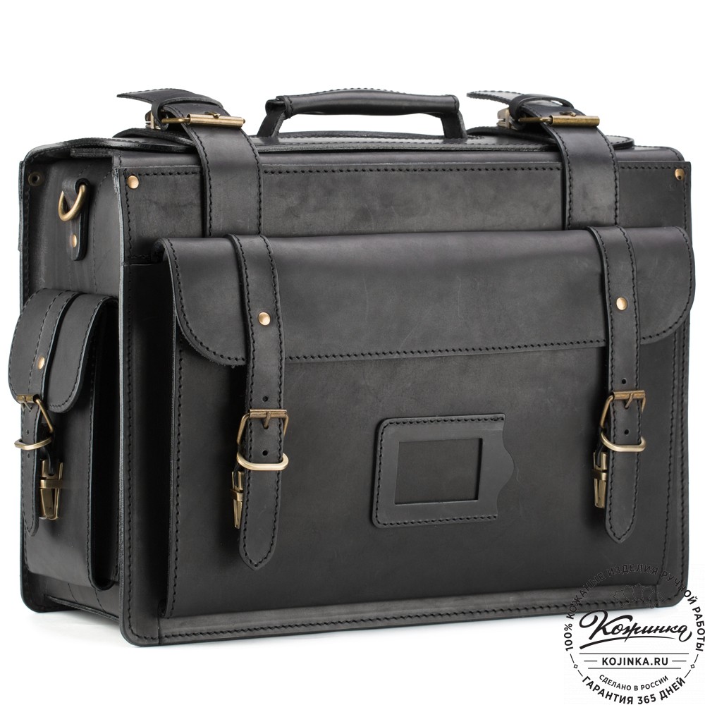 Портфель изготовлено из жесткой натуральной кожи и прочной фурнитуры.