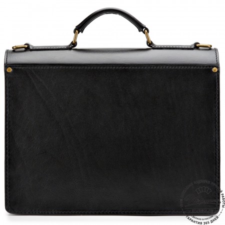 Портфель закрывается клапаном на два портфельных замка, спрятанных под ременными пряжками.