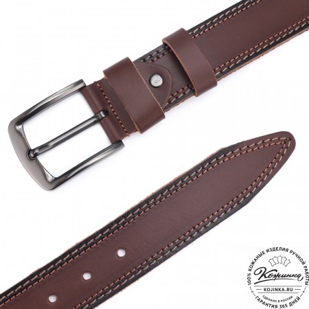 Кожаный мужской ремень "Адам" (коричневый) - ремень из толстой шорно-седельной кожи с классической пряжкой на 2 отверстия.