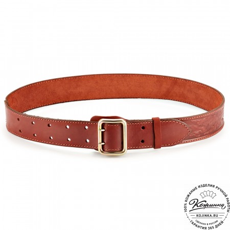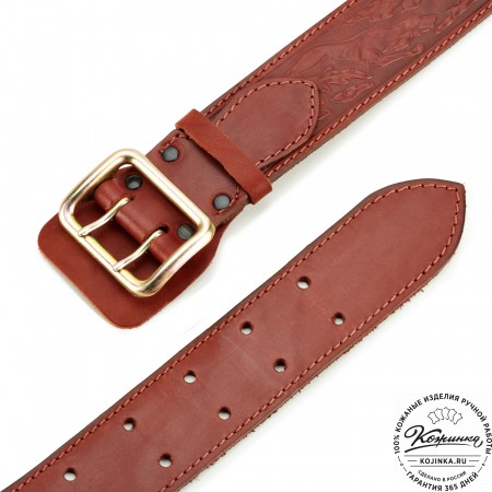 Толстая грубая шорно-седельная кожа высокого качества, тиснения на ремне с эффектом времени, удобная пряжка из латуни.