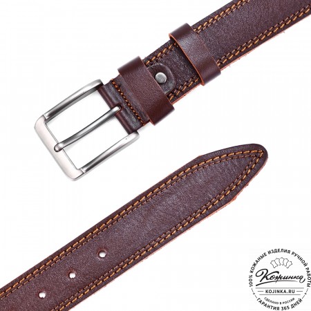Кожаный мужской ремень Милитари (коричневый) - выполнен в лучших традициях!