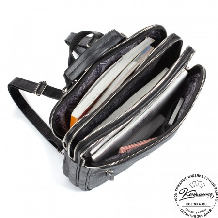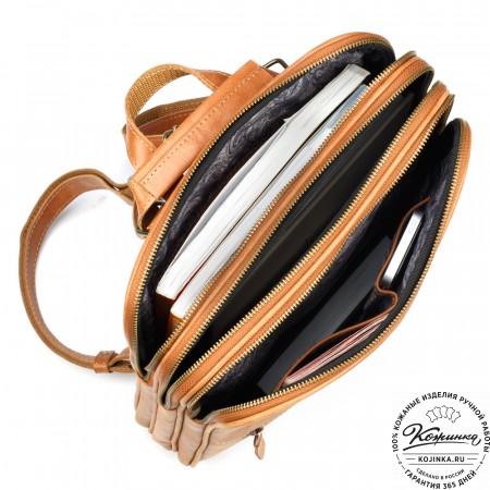 Рюкзак изготовлен специально под формат А4. В основном отделении прекрасно помещаются папка с документами, книги и журналы, ноутбук или планшет, для которых предусмотрена специальная секция с мягкой стенкой.