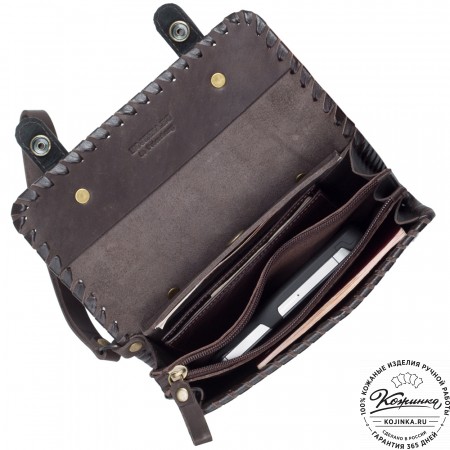 Два независимых отделения делают эту модель очень вместительной и удобной. Одно можно использовать для денег и пластиковых карт, второе для документов и телефона.