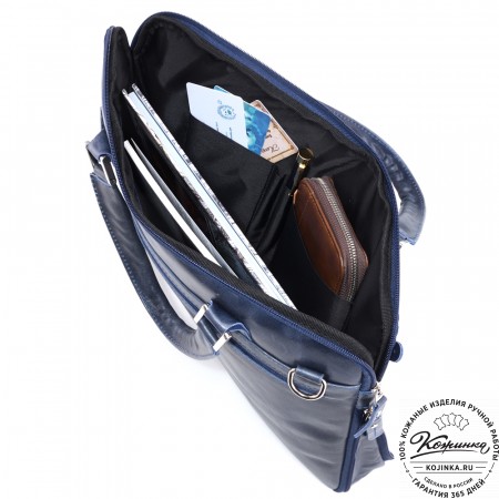 Кожаный портфель "Арамис" (синий антик) – мужской портфель для документов из натуральной кожи. Стильный и современный снаружи, удобный и продуманный внутри!