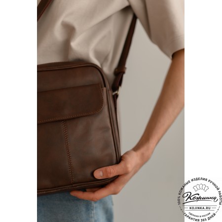 Сумка изготовлена из высококачественной натуральной кожи Антик c эффектом Пулл-ап.