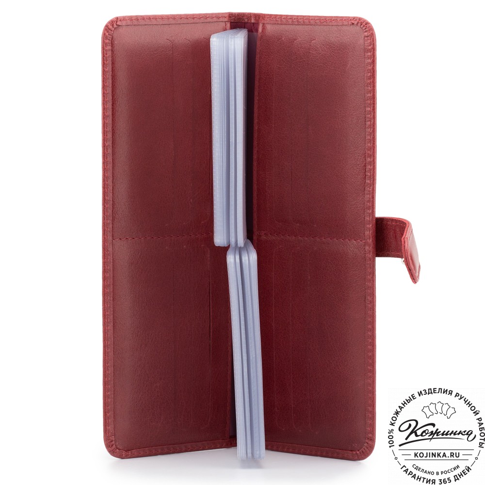 Кожаная визитница Токио (малина) - большая, вместительная визитница.