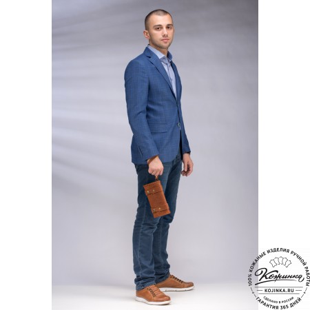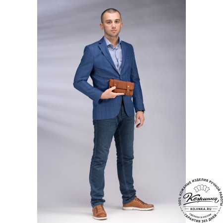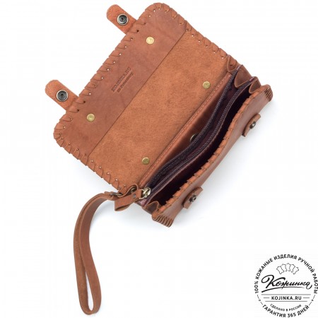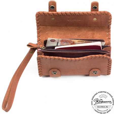 Кожаный клатч "Чукотка" "Чешир с часами" (синий) – многофункциональная модель-трансформер!